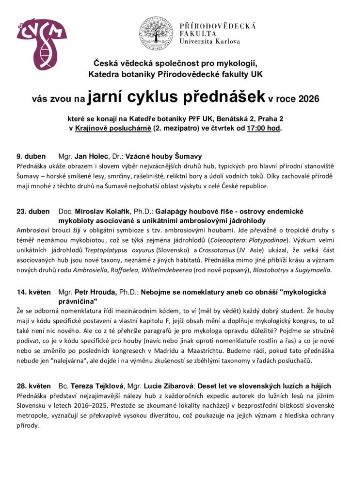 Pozvánka na jarní cyklus přednášek ČVSM